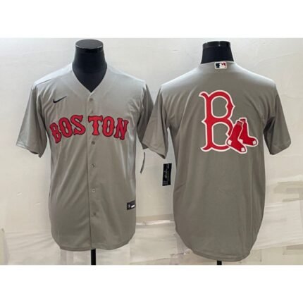 Men’s Boston Red Sox Gray Team Big Logo Cool Base Stitched Jersey