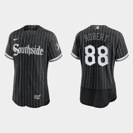 Men’s Chicago White Sox #88 Luis Robert Black 2021 City Connect Flex Base Stitched Jersey