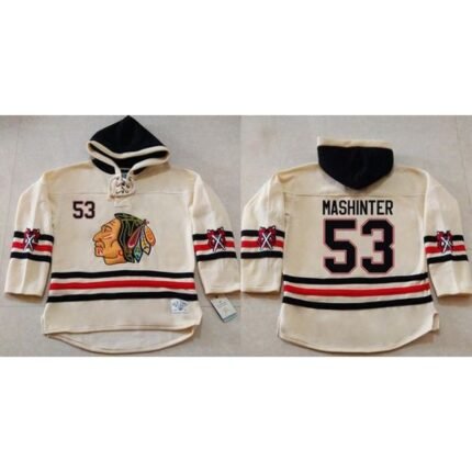 Blackhawks #53 Brandon Mashinter Cream Heavyweight Pullover Hoodie Stitched NHL Jersey
