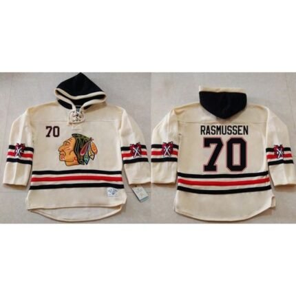 Blackhawks #70 Dennis Rasmussen Cream Heavyweight Pullover Hoodie Stitched NHL Jersey