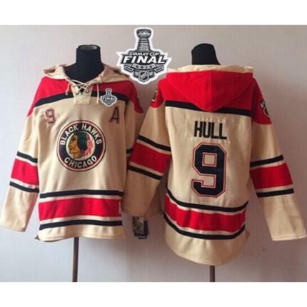 Blackhawks #9 Bobby Hull Cream Sawyer Hooded Sweatshirt 2015 Stanley Cup Stitched NHL Jersey