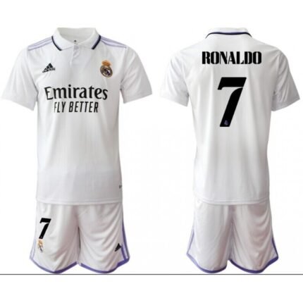 Men’s Real Madrid Blank White #7 Ronaldo Home Soccer Jersey Suit