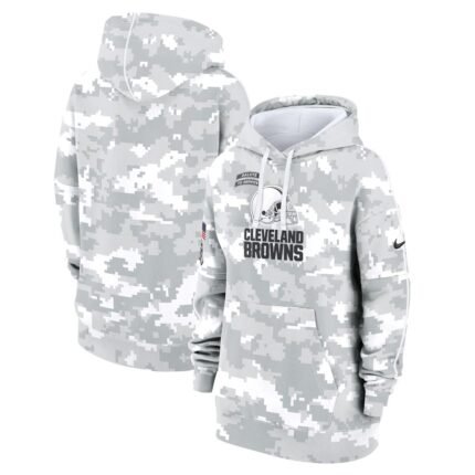 Women’s Cleveland Browns Nike Arctic Camo 2024 Salute To Service Club Fleece Pullover Hoodie