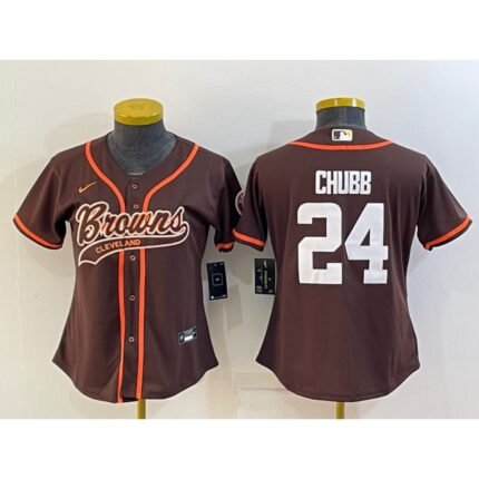 Youth Cleveland Browns #24 Nick Chubb Brown With Patch Cool Base Stitched Baseball Jersey