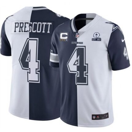 Men’s Dallas Cowboys #4 Dak Prescott Navy White Split With C Patch Stitched Jersey