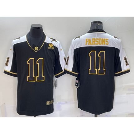 Men’s Dallas Cowboys #11 Micah Parsons Black Gold With 1960 Patch Stitched Jersey