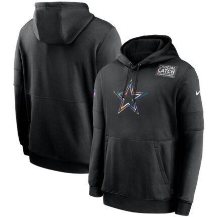 Men’s Dallas Cowboys 2020 Black Crucial Catch Sideline Performance Pullover Hoodie