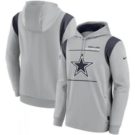 Men’s Dallas Cowboys 2021 Gray Sideline Logo Performance Pullover Hoodie