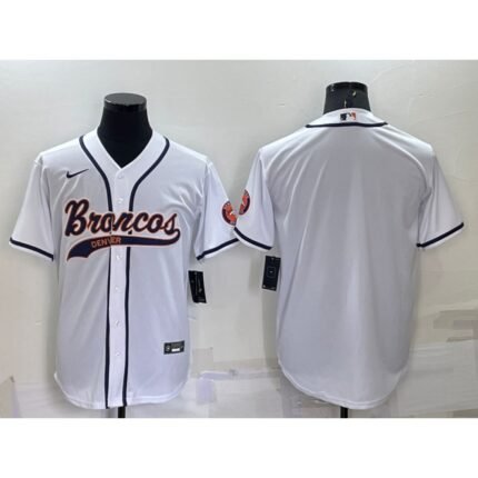 Men’s Denver Broncos Blank White Cool Base Stitched Baseball Jersey