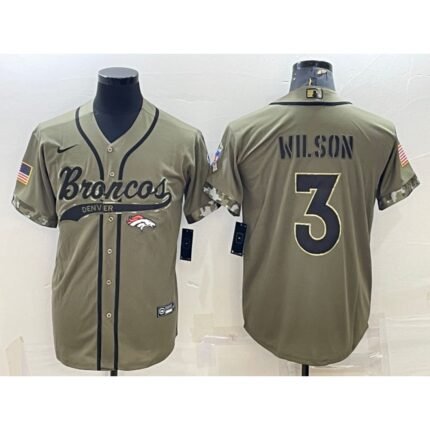 Men’s Denver Broncos #3 Russell Wilson Olive 2022 Salute to Service Cool Base Stitched Baseball Jersey
