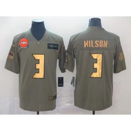 Men’s Denver Broncos #3 Russell Wilson Olive/Gold Salute To Service Limited Stitched Jersey