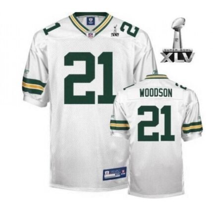 Men’s Green Bay Packers #21 Charles Woodson White With SB Stitched NFL Jersey