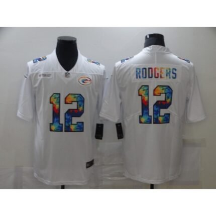 Men’s Green Bay Packers #12 Aaron Rodgers 2020 White Leopard Print Fashion Limited Stitched Jersey