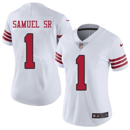 Women’s San Francisco 49ers #1 Deebo Samuel Sr White Vapor Untouchable Limited Stitched Jersey