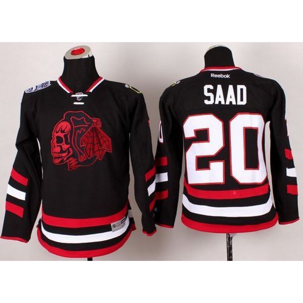 Blackhawks #20 Brandon Saad Black(Red Skull) 2014 Stadium Series Stitched Youth NHL Jersey quantity