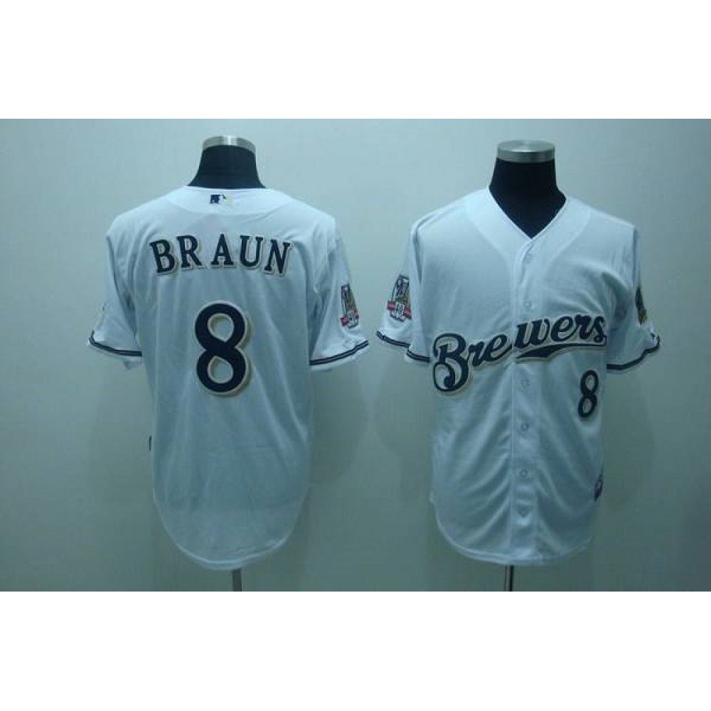 Brewers #8 Ryan Braun Stitched White MLB Jersey quantity