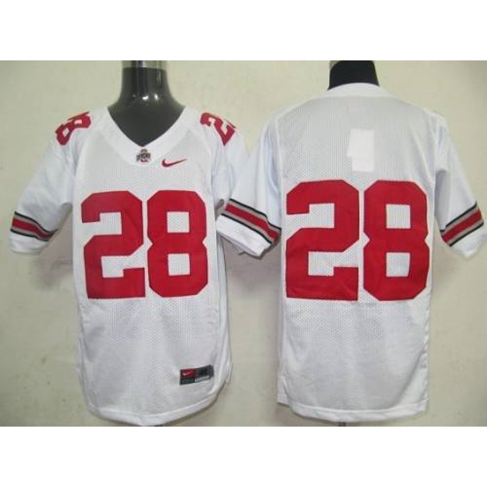 Buckeyes #28 White Stitched NCAA Jersey