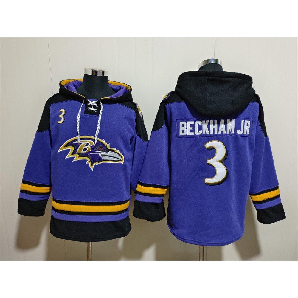Men’s Baltimore Ravens #3 Odell Beckham Jr. Ageless Must-Have Lace-Up Pullover Hoodie