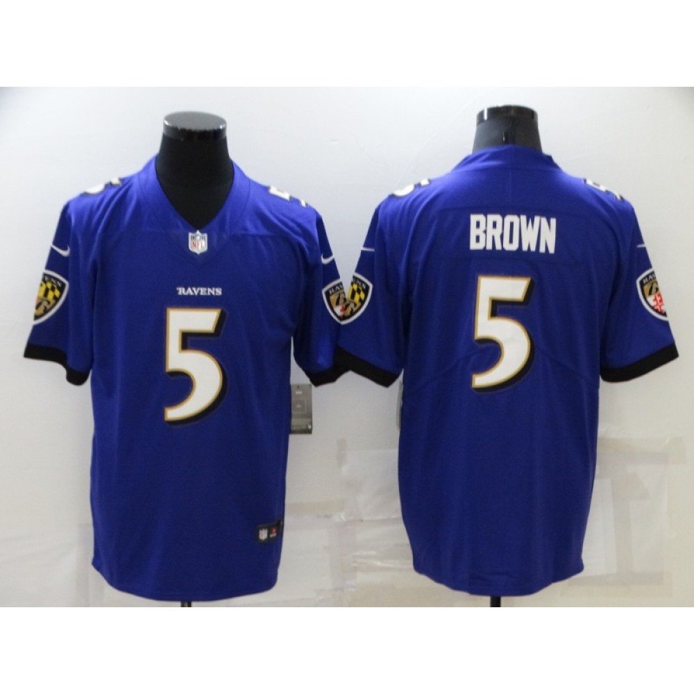 Men’s Baltimore Ravens #5 Marquise Brown Purple Stitched Football Jersey