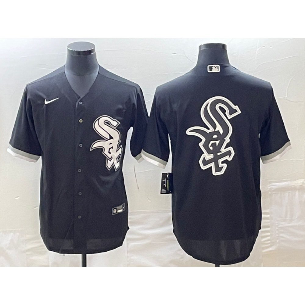 Men's Chicago White Sox Black Team Big Logo Cool Base Stitched Jersey
