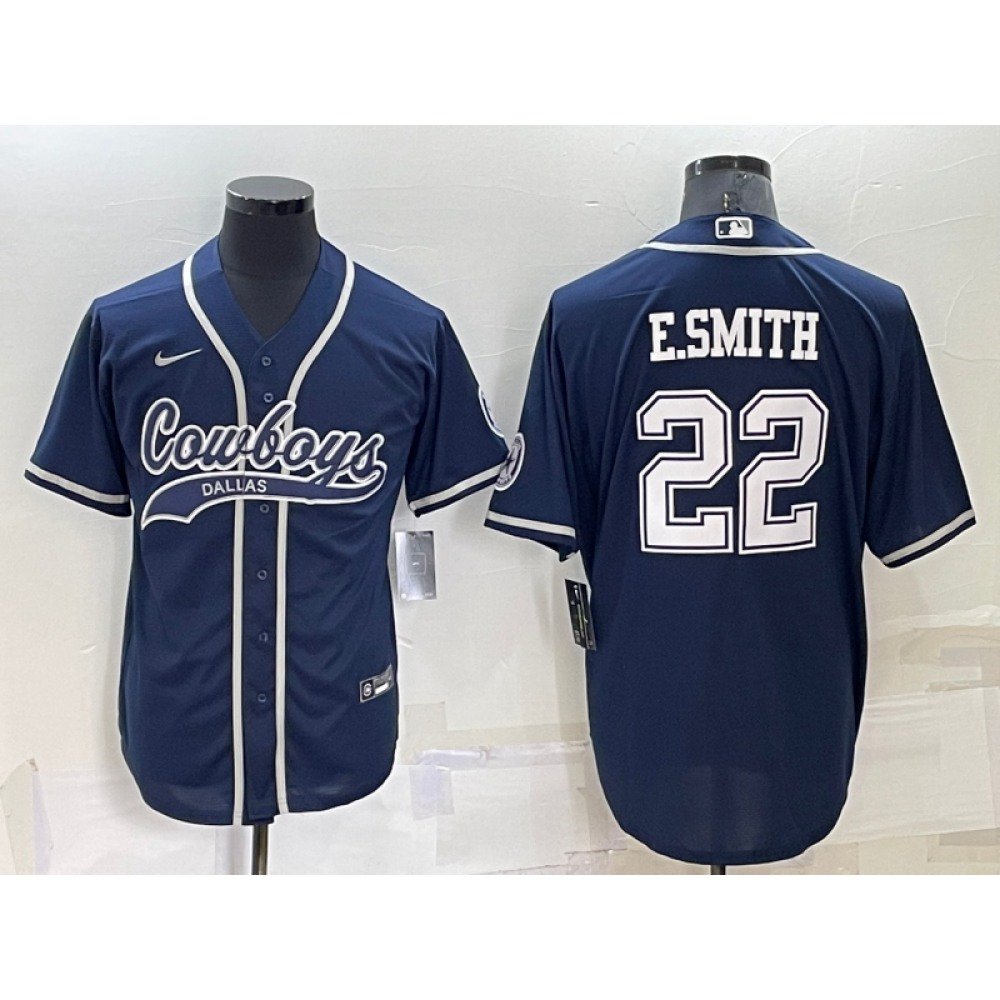 Men’s Dallas Cowboys #22 Emmitt Smith Navy Cool Base Stitched Baseball Jersey