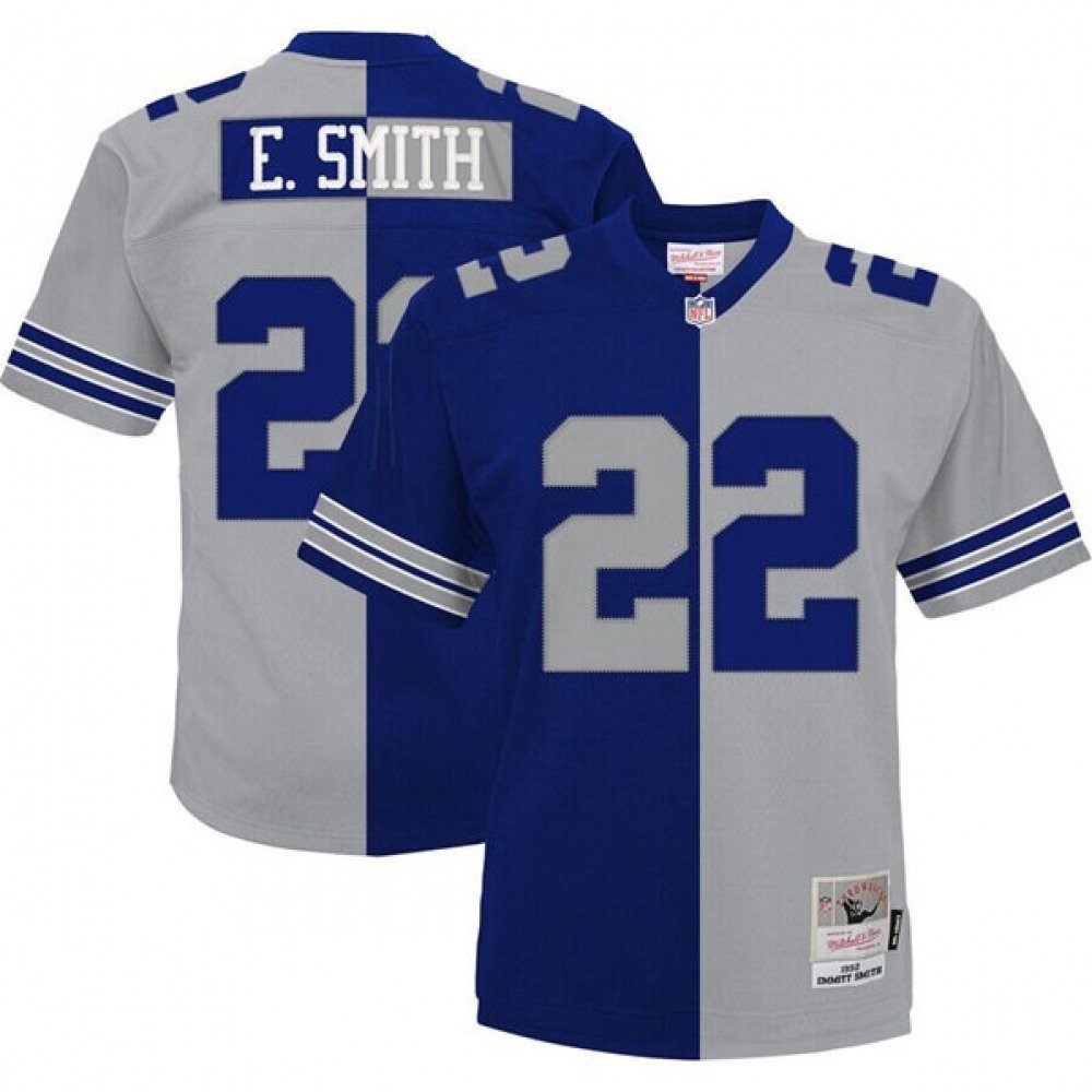 Men’s Dallas Cowboys #22 Emmitt Smith Navy/Silver Split Stitched Jersey