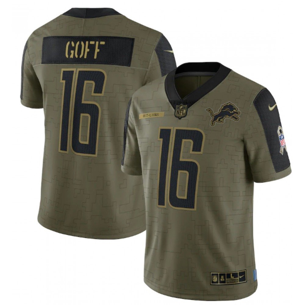 Men’s Detroit Lions #16 Jared Goff 2021 Olive Salute To Service Limited Stitched Jersey