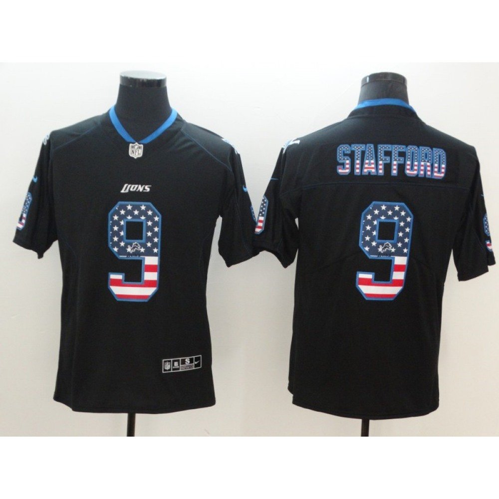 Men's Detroit Lions #9 Matthew Stafford Black 2018 USA Flag Color Rush Limited Fashion NFL Stitched Jersey quantity