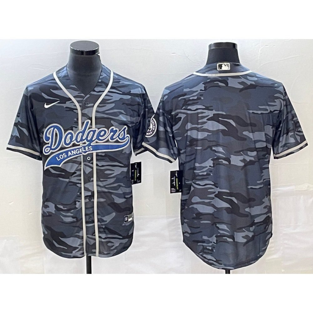 Men's Los Angeles Dodgers Blank Gray Camo Cool Base With Patch Stitched Baseball Jersey quantity