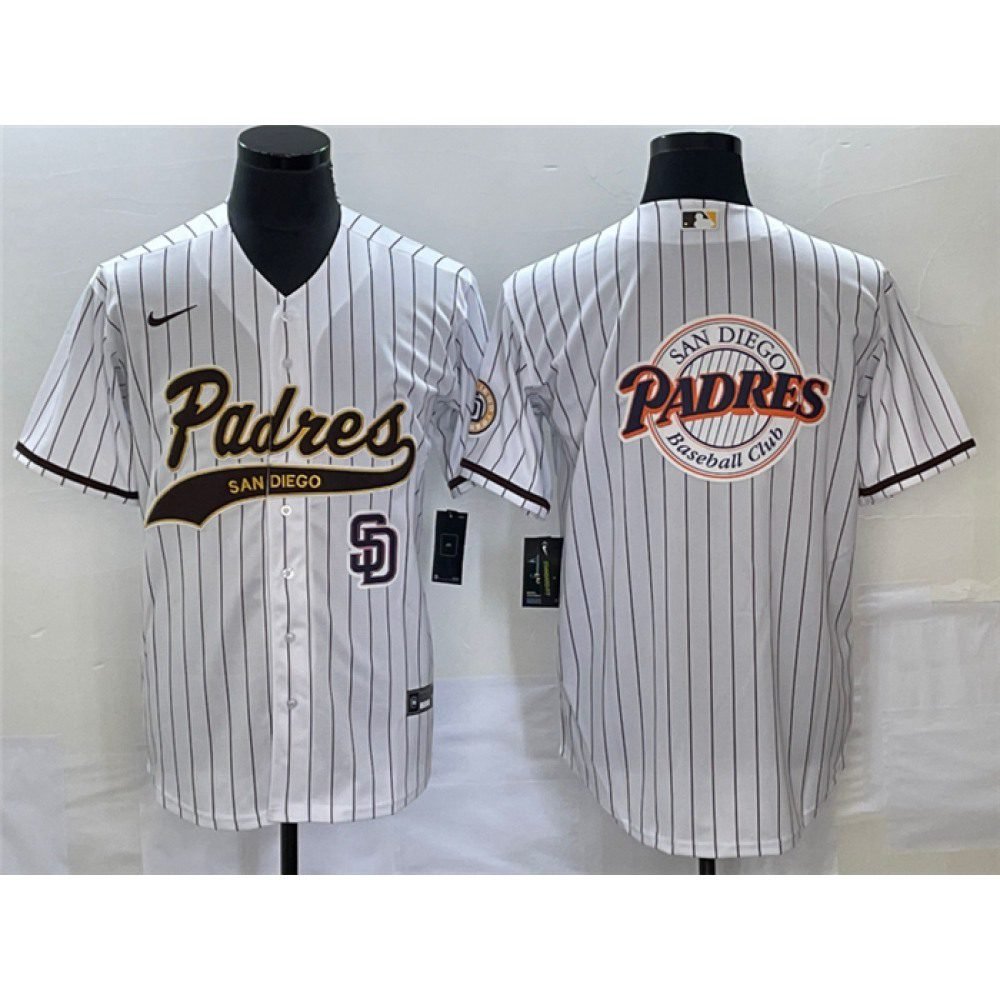 Men's San Diego Padres White Team Big Logo in Back Cool Base With Patch Stitched Baseball Jersey quantity