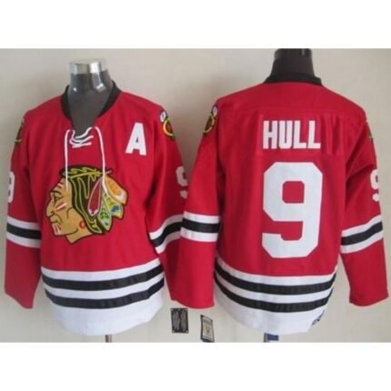 Men’s Chicago Blackhawks #9 Bobby Hull Red Throwback CCM Stitched NHL Jersey