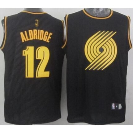 Blazers #12 Lamarcus Aldridge Black Precious Metals Fashion Stitched NBA Jersey