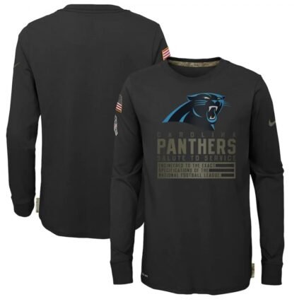 Youth Carolina Panthers 2020 Black Salute To Service Sideline Performance Long Sleeve T-Shirt