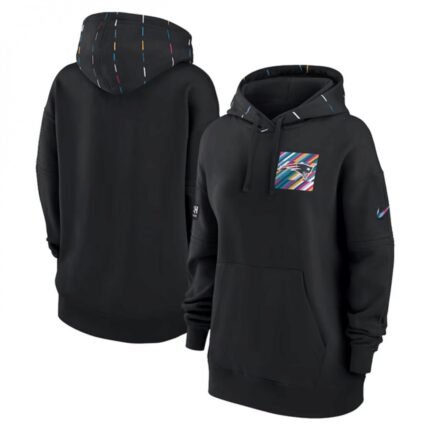 Women’s New England Patriots Black 2023 Crucial Catch Club Pullover Hoodie(Run Small)