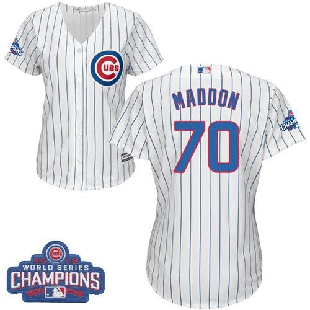 Cubs #70 Joe Maddon White(Blue Strip) Home 2016 World Series Champions Women's Stitched MLB Jersey quantity