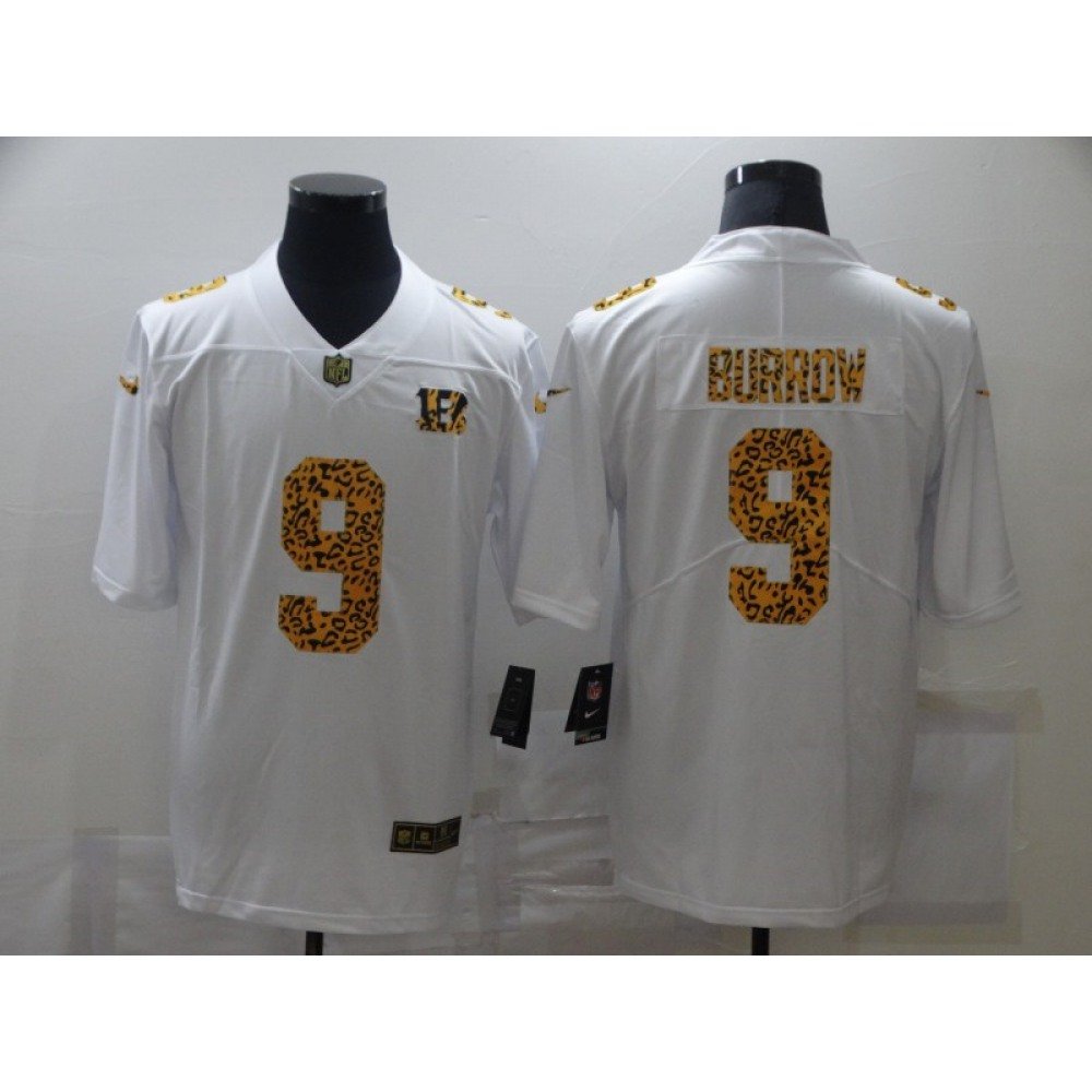 Men's Cincinnati Bengals #9 Joe Burrow 2020 White Leopard Print Fashion Limited Stitched Jersey quantity