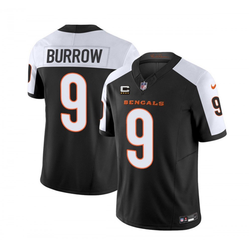 Men’s Cincinnati Bengals #9 Joe Burrow 2023 F.U.S.E. Black/White With 4-Star C Patch Vapor Untouchable Limited Stitched Jersey