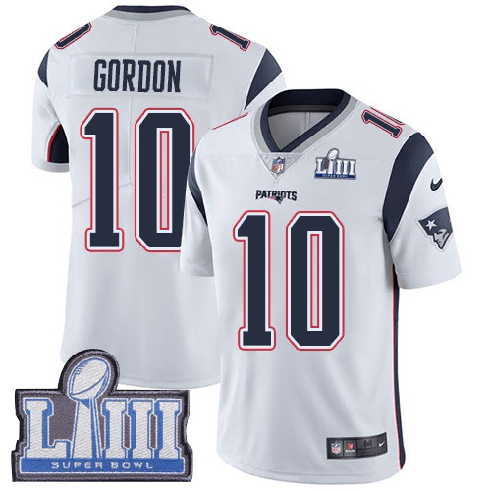 Men’s New England Patriots #10 Josh Gordon White Super Bowl LIII Vapor Untouchable Limited Stitched NFL Jersey