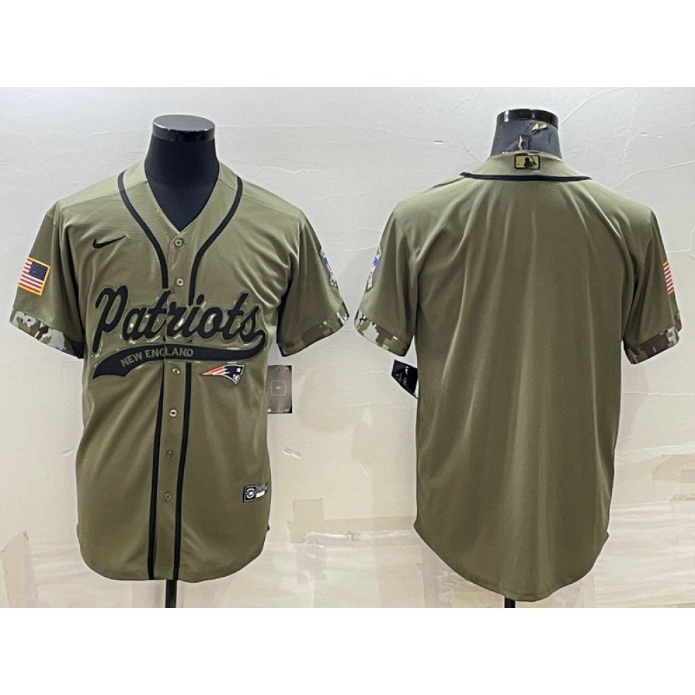 Men's New England Patriots Olive Salute to Service Team Big Logo Cool Base Stitched Baseball Jersey