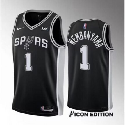 Men’s San Antonio Spurs #1 Victor Wembanyama Black 2022/23 Icon Edition Stitched Basketball Jersey