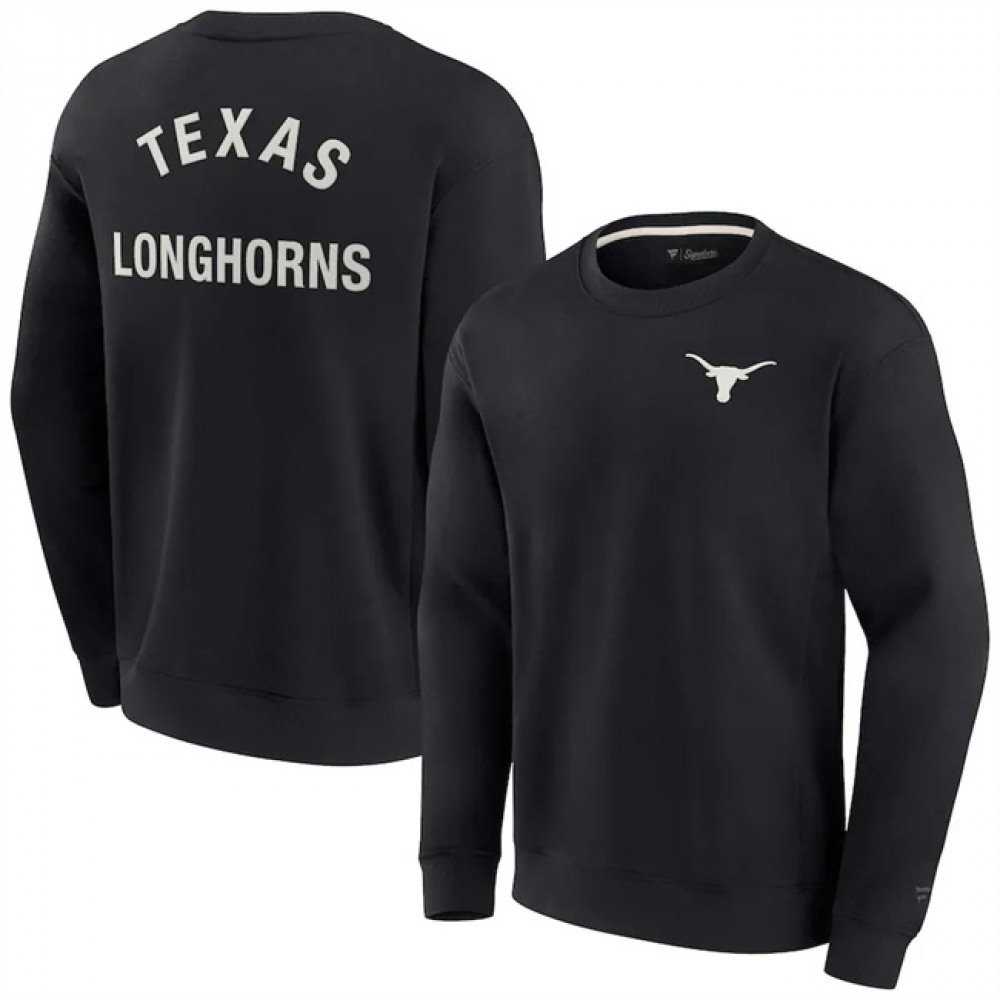 Men’s Texas Longhorns Black Super Soft Pullover Crew Sweatshirt