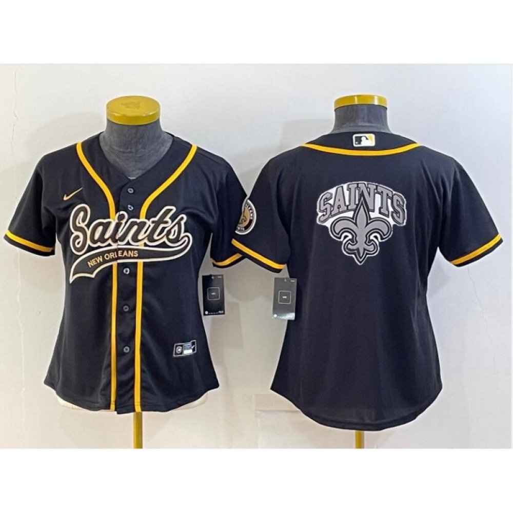 Youth New Orleans Saints Black Team Big Logo With Patch Cool Base Stitched Baseball Jersey quantity